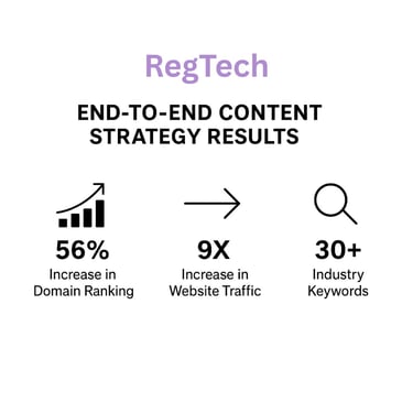An end-to-end content strategy, SEO research, website copy, glossary, editorial calendar, blogs, and back-linking strategy turned led to 56% increase in domain ranking, 9X increase in website traffic, and ranking for 30+ industry keywords in 3 months.